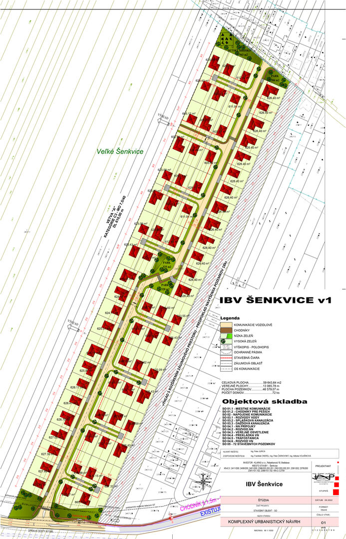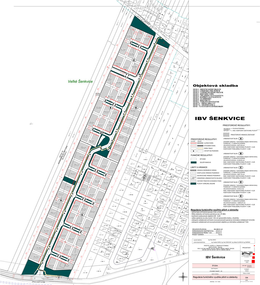 Vybudovanie dopravnej (križovatkové napojenie na cestu č. III/1086, miestna komunikácia, chodník pre peších) a inžinierskej infraštruktúry (rozvod vody, splašková kanalizácia, dažďová kanalizácia, rozvody nízkeho napätia, prípojky nízkeho napätia, verejné osvetlenie, preložka vysokého napätia, trafostanica); vybudovanie rodinných domov.