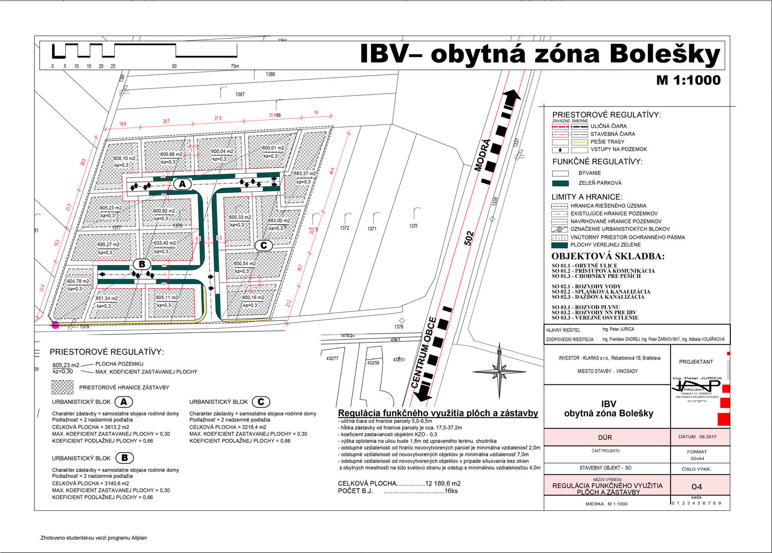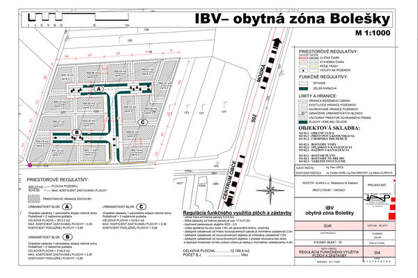 Vybudovanie dopravnej (križovatkové napojenie na cestu č. II/502, miestna komunikácia, chodník pre peších) a inžinierskej infraštruktúry (rozvod vody, splašková kanalizácia, dažďová kanalizácia, rozvody nízkeho napätia, prípojky nízkeho napätia, rozvody plynu, verejné osvetlenie).